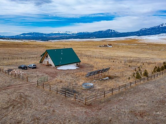 The staggering views of the mighty Sangre De Cristo mountains across this gently rolling grassland have created the perfect self-contained refuge. Easily escape to your expansive share of nature-crafted beauty where wildlife punctuates wind-tossed flowers, grasses and irrigated trees. This Energy Star(R) home is integrated with the natural beauty of this 35+ acre antelope playground. Electricity is provided by a modern solar-electric system; heated by a beautiful wood-burning stove and propane heaters that barely sip from the 1,000-gallon underground propane tank (which is at 60% after three years since filling). While the feeling is secluded, you have easy access to the state highway that is not in your view but is just a half mile away! This puts modern conveniences within a 20-minute drive. The historic town of Westcliffe is just 16 miles up Highway 69, while the additional amenities and services of Salida, Canon City and Pueblo are less than an hour's drive beyond. Mountain climbing, skiing, hiking, hunting, camping, shopping and great medical care are all within this reach. In the current real-estate market, this is a rare find. Don't let this one get away!