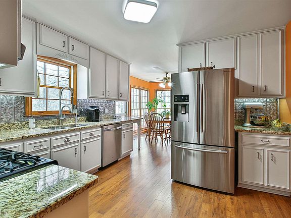 Come check out the updated master suite including upgraded master bath with new tile, granite, entire master suite has new paint and master closet has custom organize, new blinds also. This well maintained home has had many capital upgrades like Hardiplank siding, double pane windows, new doors, new garage doors/openers and roof. Located on large, peaceful lot. Upgraded kitchen has granite counters, stainless steel appliances, new flooring, soft close drawers & cabinets, undermount lighting & lit lower cabinets. Walls of windows allow sunlight to stream into the breakfast room that opens to the family room featuring a bay window & brick FPL. Formal living room can easily be main floor office. Formal dining room w/ crown molding, chair rail & door to deck. Deck runs the length of back of the home. Upstairs are two additional bedrooms that offer generous space & full bath. Unfinished terrace level is ready for you to finish your way for added living space.