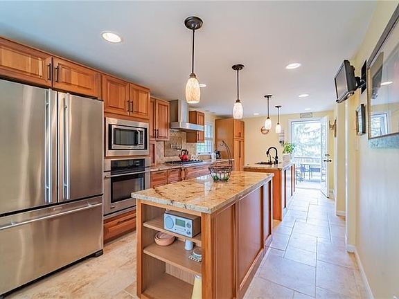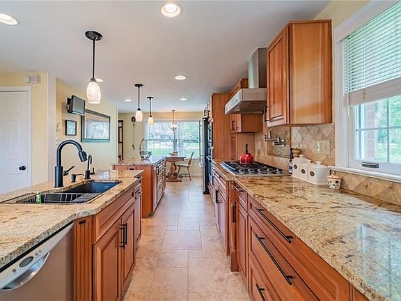 Just steps away from North Park, this stately brick colonial offers a three car garage, a spectacular 1 acre lot & an updated floor plan to meet today's lifestyle!~As you approach the level entry, the meticulously manicured lawn welcomes you & the spectacular views off the deck or from the firepit showcases nature at its finest with one acre of beauty & privacy~The kitchen is tastefully remodeled & boasts upgraded appliances, two islands, a pot filler, quality cabinetry & plenty of prep space~The expansive living room offers abundant natural light & a corner fireplace which makes entertaining easy~The second fireplace is showcased in the dining room & there is still plenty of room to seat a large dinner party~The beautifully redesigned owners' bath provides a walk-in shower, tub & two vanities~The two additional bedrooms are currently serving as a guest room & office~The LL is used for cars, an expansive workshop, laundry & storage