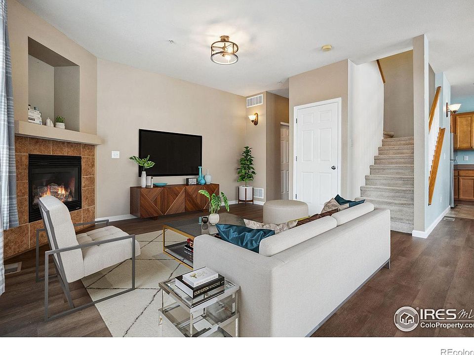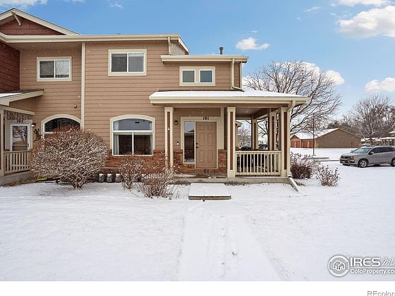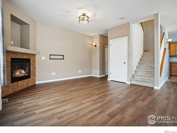 Now is the time to see this ideally-located townhome offering easy access to downtown Loveland, HWY34, and I25! Groceries, restaurants, & trails are easily accessible, and the Stone Creek community offers a pool and clubhouse with exercise room. Through the front door you are greeted by tall ceilings, a cozy fireplace in the living room, and brand new LVP flooring in living and dining rooms. The spacious kitchen has modern appliances and ample cabinet space. The laundry room is on the main level as well as a powder bathroom. Upstairs is a small loft, a shared full bathroom next to the second bedroom, and spacious primary suite with 3/4 bathroom and a generous closet. The unfinished basement gives room to expand, as well as storage or overflow space. The detached 1-car garage is 220sf.