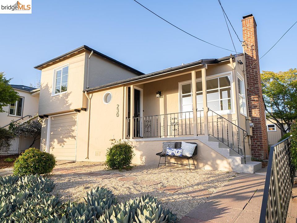 Enchanting 2 bed/1 bath (w/ bonus room and bath) split level, full of charm and sunlight. First time on the market in 30+ years and ready for your upgrades, it has that indescribable feeling of a good flow—of being at home. Refinished hardwood floors, freshly painted inside and out, and more special touches: a porthole window, entry coat closet, wall niche, cedar-lined hall closet, cozy living room and formal dining room, and bay view from W. bedroom. The eat-in-kitchen, with corner windows, looks out to a gracious, leafy maple adorning a large backyard. This is the place for grilling and chilling, to go garden crazy or low-maintenance lazy. Perhaps an ADU for you? The attached garage is convenient for a car, storage and laundry. Top level offers 2 sunny bedrooms and a bath; and on the lower level, a pine-paneled bonus room and bathroom--your third bedroom, home office, or guest quarters. This friendly neighborhood, with an 80 Walk Score, is close to schools, parks, shops and restaurants, 2 Farmer’s markets, BART, Transbay bus stop, and easy freeway access. You're home, baby!