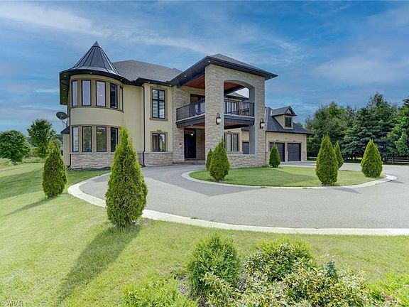 Looking for a peaceful retreat in the heart of nature? Look no further than this stunning property for sale, nestled on a spacious 1.25 acre lot in Puslinch area. High-end custom-built home boasting an impressive 5300 sq ft of living space, this remarkable property features 4 bedrooms, 5 bathrooms and a triple garage with additional space for 10 cars on the driveway. This home offers ample room for outdoor activities and relaxation. Upon entering the home, you'll be greeted with a 10-foot high ceiling on the main floor, custom hardwoodA flooring, hardwood stairs and custom solid wood doors and windows. The living areas are designed with an open concept, offering a separate family, living, and dining areas, all of which are perfect for entertaining guests or relaxing with your loved ones. The upgraded custom-built kitchen includes high end built-in appliances, a breakfast bar, pantry and a dinette area with wide glass doors that open up to a covered patio. A bonus spice kitchen is also included on the main floor. The main floor also features a large-sized bedroom with a luxurious ensuite and a walk-in closet, is a perfect haven for guests or in-laws. The second floor is equally impressive with 10 feet high ceilings, three bedrooms, each with its own ensuite bath, a large loft and den that offer ample space for relaxation and entertainment. The covered porch in front is perfect for enjoying your morning coffee while taking in the stunning views of the neighborhood. Laundry facilities are conveniently located on the second floor as well. The home's 2400 sqft unfinished basement offers 9' ceiling, plenty of large windows, side entrance from the garage and energy efficient dual stage furnace. This home is conveniently located close to the South End Plaza and is only 10 minutes away from the University of Guelph and 15 minutes from Highway 401. Don't miss your chance to own a piece of paradise in the heart of Puslinch, schedule your private showing today!