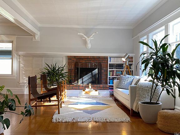 Picturesque 3 bed/2 bath pre-Craftsman bungalow, built in 1909, offers 1546 sq. ft. in historic Point Richmond. This curated home features modern updates with historic charm, including stained-glass windows, hardwood floors, and picture moldings. Spacious entry opens to a light-filled living/dining with raised hearth fireplace. Expansive chef's kitchen includes new quartz counters, tiling, and built-in breakfast nook with views of the hills. Multi-use space with main-floor laundry and French doors leading to a private deck surrounded by gardens. Master bedroom is clad in California redwood, and master bath is completely remodeled with a glass enclosed shower, carrara marble vanity, and brass finishes. Two additional bedrooms are joined by a bathroom with a beautiful clawfoot tub. 2-car tandem garage has tankless water heater/storage. Walking distance to shops, restaurants, parks, and trails boasting unparalleled views of the bay. Quick access to I-580 and the Richmond Ferry Terminal.