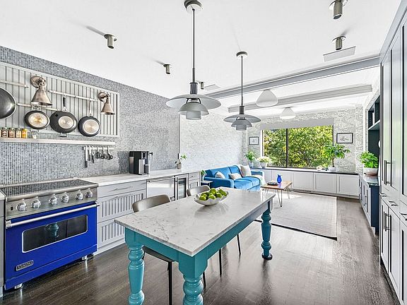 Designed to maximize both light and space, the kitchen was expanded to include a full-size den/media room overlooking the Park open to the kitchen for entertaining or a custom privacy screen can separate the two. The striking, renovated kitchen is as beautiful as it is functional with abundant custom cabinetry and built-in pantry storage, balanced by sleek marble counters, and mosaic tile backsplash. Top-of-the-line stainless appliances include Sub Zero refrigerator, Bosch dishwasher, Viking range oven, and wine refrigerator.
