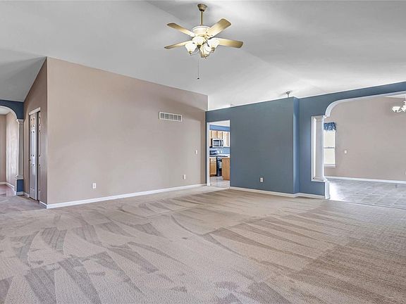 Wonderfully cared for spacious 1 owner home near Bear Creek! Home has over 2200 sq ft on main level! Entering the home a spacious great room greets you with vaulted ceilings and gas fireplace! Kitchen is large with center island, ample counterspace, and stainless appliances! Large Breakfast room and dining room! Access your large covered aggregate patio from your sitting room and spacious living room! 3 spacious bedrooms! Master Suite is large with walk in closet, sep tub/shower, and make up vanity. Secondary bedrooms are spacious as well with Walk in closets!. Large main floor Mud Room/ Laundry Room. Basement ready to be finished with ample build in shelving! All of this just steps from Bear Creek Golf Course and the Convenience of Wentzville Parkway. Additional Rooms: Mud Room