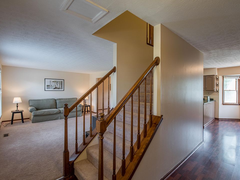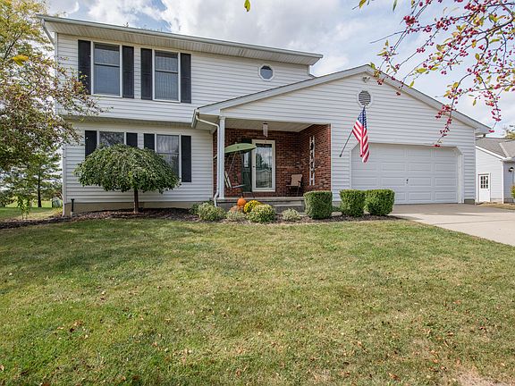 Seller has done Everything! Super Clean with Three Finished Levels of Living. Large Amount of Counter Space in Kitchen that is Open to Family Room w/Brick Wood-burning Fireplace. Brand New Carpet Throughout Whole Home, New Laminate Wood Flooring, New Master Shower Door, New Furnace Dec 14', New Hot Water Tank 15', New Sliding Door, and More! Enjoy the Fenced Yard on the New 2-Tier Deck while Entertaining. Year Round Private Tree'd Yard with Empty Pasture behind Property Line. Large Shed for Extra Storage. Shelves in Garage Convey. 3/4 Basement with Finished Bonus Room Perfect for Rec, Play, Work-out, or Movie Room. Insulated Garage Door w/Opener. Home & Gas Line Warranty in place. Located on a Culd-a-sac!