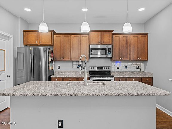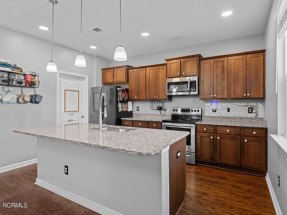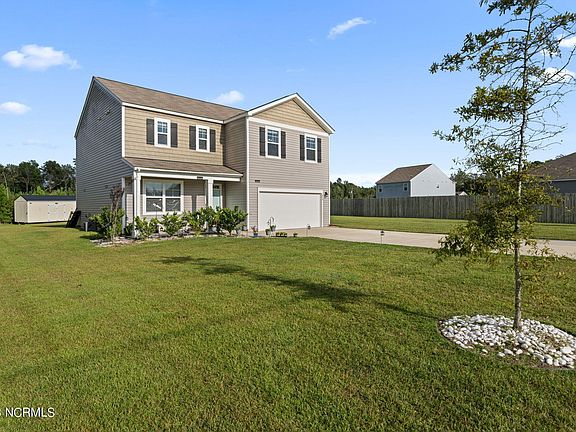 Welcome home to this 4BR/2.5BA in the Preserve at Morris Landing in Holly Ridge, NC. Built in 2019, this one-owner home comes with a versatile flex room on the main floor, center island with a walk-in pantry in the kitchen, and large great room. On the second floor, you'll find 3 ample-sized guest bedrooms and an impressive owner's suite with a large, walk-in closet. The master bath includes dual vanities, separate soaking tub & walk- in shower. This home features upgrades including granite counters, recessed lights, maple cabinetry, stainless appliances, and wood-grain LVT floors in living area. Upstairs carpet is brand new, recently replaced prior to listing. A 12x20 insulted, outdoor shed equipped with solar lighting conveys with the home. This property is situated on a large lot and is steps away from the ICW with water access, 15 minutes to Surf City/ Topsail Island, & convenient to the beach and bases. This home is truly a rare find in Holly Ridge, you do not want to miss this one! Sellers are offering $3,000 Buyer Credit, use as you choose for paint, etc.
