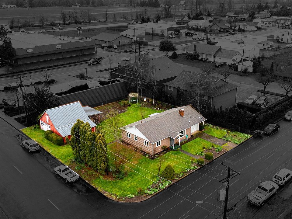 Located on a double, commerical zoned corner lot. This home has a lot of potential uses. Includes a large shop building, spacious backyard, formal dining room, separate utility room and cozy wood burning fireplace in living room.Buyer to do due diligence regarding approved zoning uses. SOLD in "AS IS" condition.