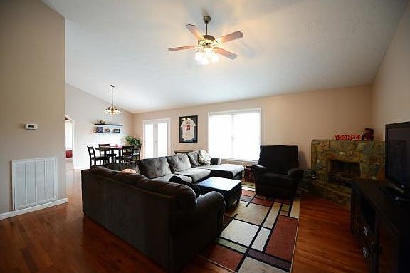 This lovely home is situated on a large lot and nestled in a quiet subdivision just minutes from the city limits. This home features four bedrooms, two baths, large eat-in kitchen complete with granite counter tops. Range, Refrigerator, Washer, and Dryer to remain with home. Nice Living room with fireplace with connecting Dining area. Lower level has a nice family room with walk-out French doors to patio area. Plenty of unfinished storage and plumbed for another bath in the basement. All this and has large fenced in back yard. Attached two car garage another garage area in the basement.