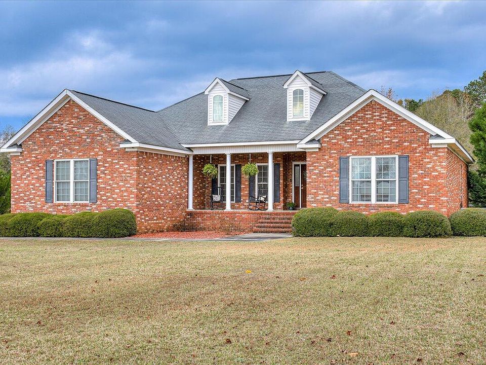 Brick, 4-bedroom home on 2 acres with in-ground swimming pool! Located on desirable Cohen Road just north of Waynesboro, this single-story home offers 1,998 square feet and has been excellently maintained since its construction in 2004. With a rocking chair front porch and traditional design, the home offers great curb appeal and is situated in the center of the property. The open floor plan gives efficiency and loads of natural light to the main living areas, where the entry, dining room and living room in the heart of the home are accented by tray ceilings and recessed lighting. The kitchen offers bar seating and an adjacent breakfast area that overlooks the pool. The split floorplan positions the primary bedroom suite on one end of the home, with walk-in closet and en suite bathroom (with garden tub, shower, and large double vanity). Three spare bedrooms and a hall bath are located on the other side of the home, with each bedroom boasting two closets.