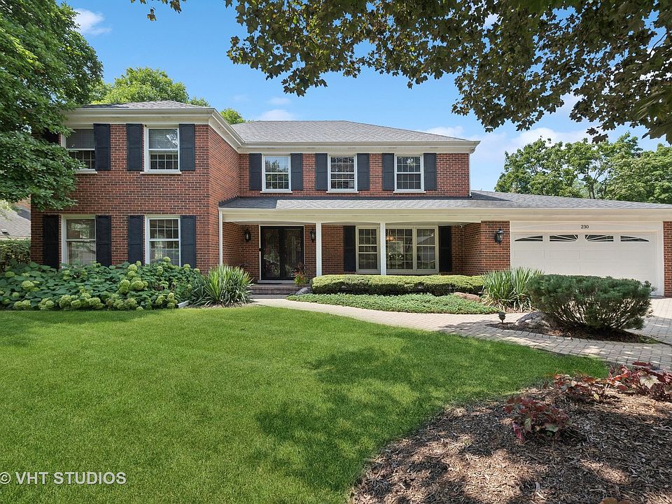 This spectacular Fox Point home has it all! Boasting an expansive floor plan, beautiful updates and set on just over a half-acre lot in a prime location near the community pool and situated within minutes to award winning Barrington schools, commuter train and downtown Barrington shops and restaurants! The inviting charm of this all-brick home welcomes you with its double door entry, curved staircase, beautiful hardwood floors and an abundance of natural light throughout. Flanked by the dining and living room with a perfect half bath in between, there is plenty of space for family gatherings and entertaining. As you continue to the heart of the home you will find an inviting family room with cozy fireplace opening to the chef's delight kitchen and fabulous sunroom. The spacious, updated eat-in kitchen features quartzite and granite counters, large island with breakfast bar, updated appliances, dry bar and tons of cabinet space. With its vaulted ceilings, walls of windows and slider (all Pella with integrated blinds) to the sprawling rear deck, the sunroom offers year-round enjoyment. A main level office and additional half bath makes work from home days a breeze, while the large laundry/mudroom with garage access provides functionality and convenience. Upstairs you will find 5 bedrooms and 2 full baths, including a wonderful primary suite with walk-in closet and luxe bath. A 2020 renovation of the second level included new hardwood floors, fully updated primary and hall bathrooms and Hunter Douglas Silhouette blinds on all windows. The finished basement with recreation, game and exercise rooms offers a wonderful bonus space for additional living and entertaining needs. When it is too nice to stay inside, enjoy the large deck with postcard perfect views of the private rear yard with lush landscaping and ample space for playing and recreation. Two car attached garage with storage & epoxy flooring! Ideally located to enjoy all of Fox Point's amenities including swimming pool, sports courts, lake, playground, and social activities. Everything you are looking for is right here!