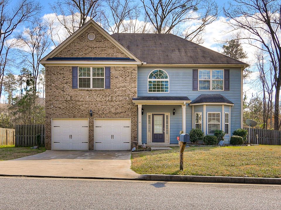 Pristine home in Mill Branch! Front entry opens to foyer with vaulted 18ft ceilings, chandelier, and hardwoods that run throughout. Formal dining room is to the right through arched pass way with coffered ceilings, wainscoting, and crown molding. Hardwoods continue into the spacious kitchen with breakfast room, kitchen island, large pantry, granite counters, and matching appliances. Family room is the perfect place to curl up in front of the fire or entertaining friends and family! Half bathroom on the main floor is great for guests. Massive owner's suite is upstairs with vaulted ceilings and en suite bathroom with garden tub, tile shower, dual sink vanity and GIANT walk in closet. Three additional bedrooms and second full bath with shower/tub combo make up the rest of the second level. All bedrooms feature fresh paint and new carpet. Fenced in backyard with grilling patio! All of this close to shopping, dining, and Ft Gordon!