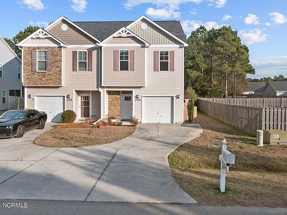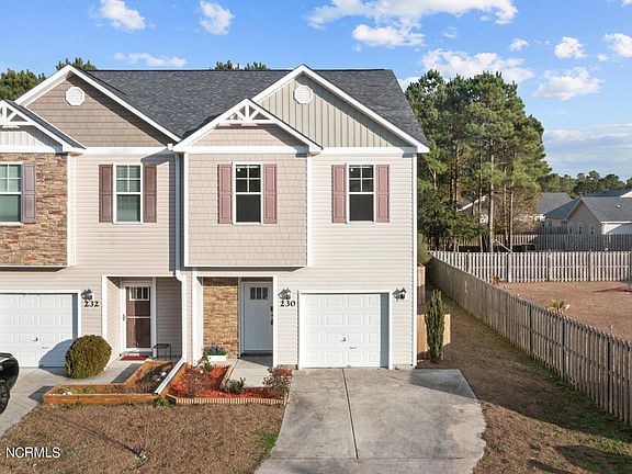 Immaculate townhouse in Holly Ridge with 3 bedrooms, 2.5 bathrooms, a 1-car garage with a big driveway, a large fenced backyard, and a covered back patio available for sale. The home has modern LVP flooring throughout, was recently painted, and boasts must-see updates. The kitchen is equipped with all stainless-steel kitchen appliances and a beautiful backsplash. The huge master bedroom has a very large walk-in closet, an updated master suite with dual vanity sinks, enclosed shower, and a lovely soaking tub. Easy access to Hwy 17 and less than a 15-minute drive to Stone Bay, Surf City, and North Topsail Beach. Conveniently located between Wilmington and Jacksonville for an easy commute. These townhomes go quick so schedule your private showing today before it's too late!