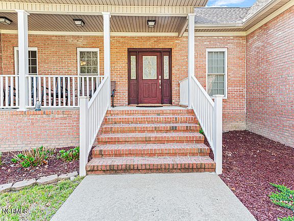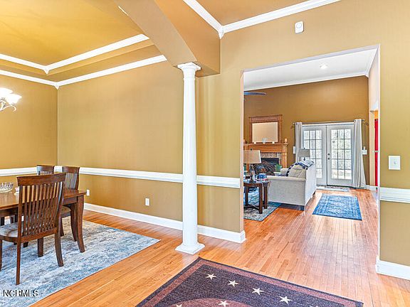 PRIVACY abounds at this huge one-level home on 3.74 secluded acres! Drive down the wooded driveway to this stunning brick house in the middle of a clearing. This beauty opens to a foyer and formal dining room with tray ceiling, and a spacious family room with gas fireplace and engineered hardwood floors. The gourmet kitchen with breakfast area features a 5-burner gas cooktop, wall oven, built-in microwave, granite counters, and sink in the island. Large laundry room with sink and plenty of cabinet space. All three bedrooms and an additional office space are on the main floor. The large owners suite includes tray ceiling, separate vanities, jetted tub, separate shower and walk-in closet. Need additional space? A large bonus room with dedicated climate control is upstairs over the garage. The home's exterior offers a covered front and back porch, stamped concrete patio, extended parking pad by oversized side-entry double garage, shed, backyard pet pen, and invisible dog fence.