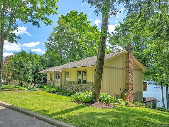 Welcome to your private lakefront getaway with incredible views! Nestled on a beautiful lot at the end of a dead-end-street, this property offers a unique opportunity to experience waterfront living like never before. With an impressive 125' of lake frontage complete with a boat house, extensive docks, decking & lake wall, this hidden gem provides the perfect setting for relaxation & recreation. The home offers 3 Bedrooms & 2 Bathrooms, updated eat-in Kitchen w/new SS appliances & island that overlooks the cozy Living Room w/wood burner & sliding doors to the deck. Walkout lower level includes a Family Room, fireplace, wet bar & built-ins and laundry area. Andersen windows. Home is being sold fully furnished. Detached 3+ car garage.