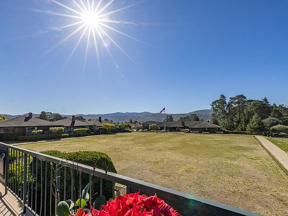 THE CROWN JEWEL OF DEL MESA. Truly highly desirable B unit with spectacular views of the majestic Santa Lucia mountain range, lawn bowling, club house and a magnificent oak tree as its neighbor. Totally remodeled featuring chefs kitchen with top-of-the-line appliances, custom cabinetry, stone counter tops, vaulted ceilings w/custom wood beams, built-in desk in den, wrap around deck bathing in natural light, designer baths, heated towel bars, custom stone entry, custom front door, luxurious new carpet, wood floors & gas fireplace. Del Mesa features 24-hour security gate, the Clubhouse with restaurant and meeting areas, a fitness center with gym and heated indoor pool, lawn bowling and putting greens, the Arts and Crafts building and other amenities. This is carefree living at its finest! Easy commute along with just minutes to the best of golf, shopping & ocean.