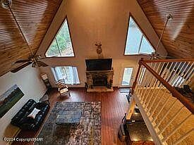 This beautiful chalet sits on 1.20 acres of privacy in front of State Game Lands, with nothing but rhododendrons behind you.