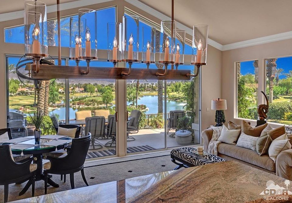 Will rent for the season..This lovely Smoketree 2 home has million dollar lake and mountain views. The home is situated on one of the best elevated lots in Indian Ridge CC. This 3 bedroom and 3.50 bath home overlooks the 5th green of the Grove golf course and views of the 6th fairway. Walls of glass that consist of windows and 5 patio doors. The spacious great room has a fireplace, wetbar and opens to the formal dining and family room. The kitchen has granite countertops, an island and pantry. There are 2 private guest bedrooms with upgraded marble bathrooms throughout. Spacious owner's suite with block glass that allows natural light with privacy in bathroom and has 2 walk in closets. Granite and marble is used throughout this lovely home. Crown molding and numerous upgrades have been done recently. Indian Ridge CC has 2-18 hole Arnold Palmer Championship golf courses, sports, spa,tennis, dining and social activities. Memberships available.