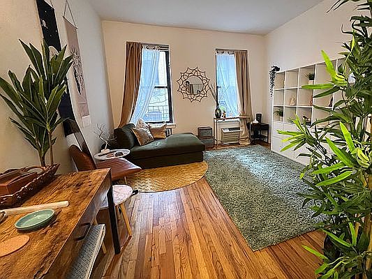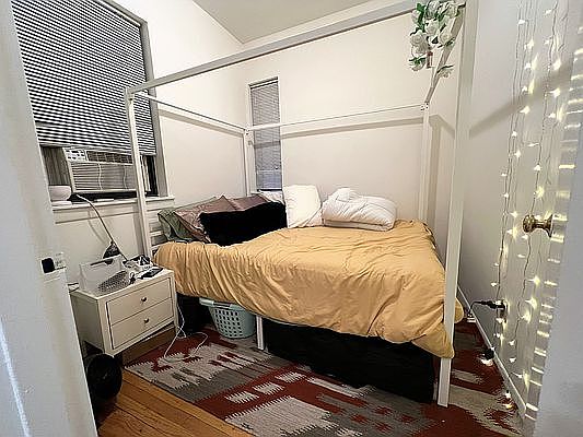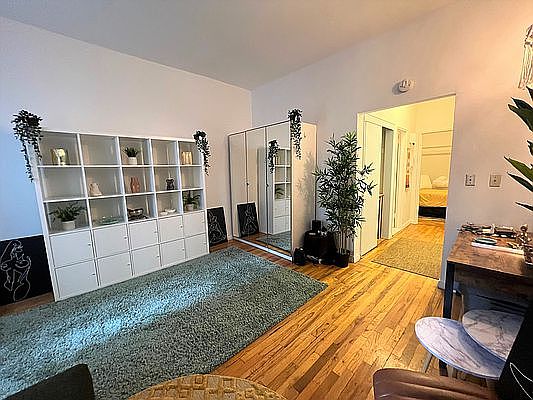 One bedroom with large living room, 2 closets, high ceilings and hardwood floors. Very quiet with a queen sized bedroom. The building is a very well kept elevator low-rise with video security and laundry on the premises.Cats ok dogs case by case.Broker fee applies.No broker inquiries please.