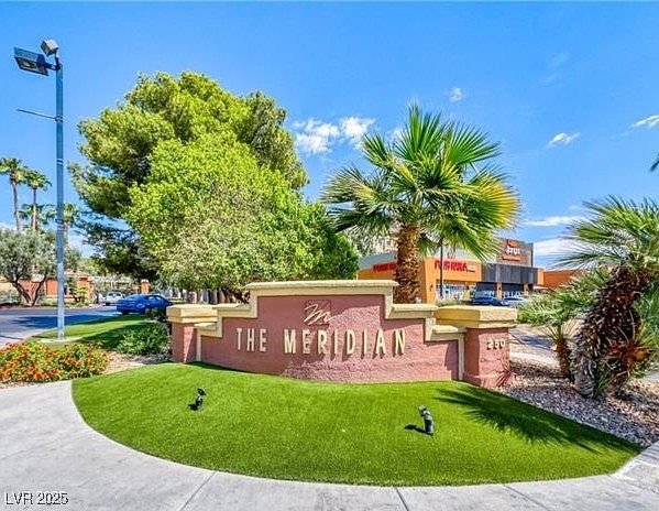 Charming 1st Floor Condo at The Meridian Gated Community with Resort-Style Amenities! Welcome to this inviting one-bedroom, one-bath condo on the first floor of The Meridian. Featuring wood floors, crown molding, and abundant natural light, the living room includes a dining area and sliding doors that open to a private balcony. The kitchen has sleek black granite counters and stainless steel appliances, including a microwave, with washer and dryer included. The spacious bedroom features mirrored closet doors, and the bathroom offers a tub/shower combination. The Meridian is a gated community with resort-style amenities such as a tropical pool and spa, clubhouse, fitness center, tennis courts, and BBQ and park area. Conveniently near shopping, dining, and entertainment, this condo combines comfort and convenience. Tenant to verify all information, including schools.