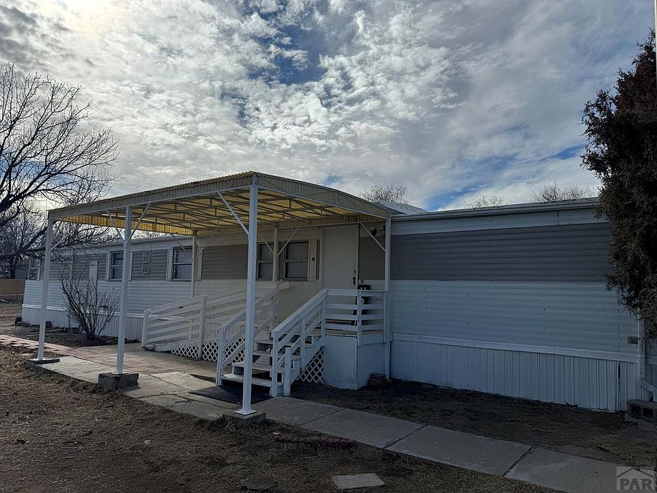 Pueblo West Rancher Spacious with over 1,000 sq ft! 3 Bedrooms and 2 bathrooms. New everything, new hardwood flooring, paint, lighting! Huge updated kitchen with tons of cabinetry! Brand new updated bathrooms with dual vanities. This property comes with a 2 year Home Warranty that covers all major components of the home! It's situated on a great size lot, fully fenced with a huge storage shed. No lot rent and no Hoa. This home is priced to sell, no other 3 bedroom homes in the area in this price range. Call today before it's gone.