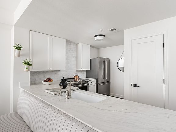 Live in the heart of Decatur in coveted Decatur Renaissance! Completely renovated, this 2-bedroom condo boasts fine living with high-end finishes throughout. The light filled open floor plan creates ample space for entertaining or relaxing nights in. Kitchen features white cabinets, marble countertops & backsplash, stainless steel appliances and Circa light fixtures. New hardwoods with custom ebonized stain lead to private balcony overlooking peaceful courtyard. Accessible brand new washer/dryer near living space for comfort and ease. Retreat to large master with walk-in closet and upgraded marble bathroom with custom vanity. Fantastic community amenities include pool, designated parking, fitness center & common area for spending time with old friends. You'll have it all with elegant living & location!
