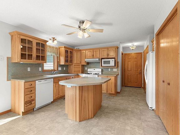 JUST LIKE NEW and move in ready. Three bedroom (all on one floor) one bath ranch style home in Randall. Maintenance free exterior, new roof, hardwood cabinets & trim, pass thru bath from owners suite, large windows for lots of natural light. Basement is partially finished with plenty of room for recreation or more living space. Oversized attached garage (864 Sqft) with ample storage for car & outdoor equipment.