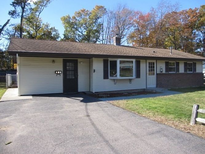 Great starter home in a great location! Oversized ranch w family room or possible 4th bedroom w access to rear newer composite deck. All brand new wall to wall carpeting and completely new interior paint job! Newer, Anderson Bay Window illuminates the spacious living room and open floor plan to Eat in Kitchen. Updated roof, electric, windows, vinyl siding, forced hot water baseboard heat and central air. Very large, and level fenced yard. Washer, dryer, refrigerator, cooktop electric range and two sheds all stay.
