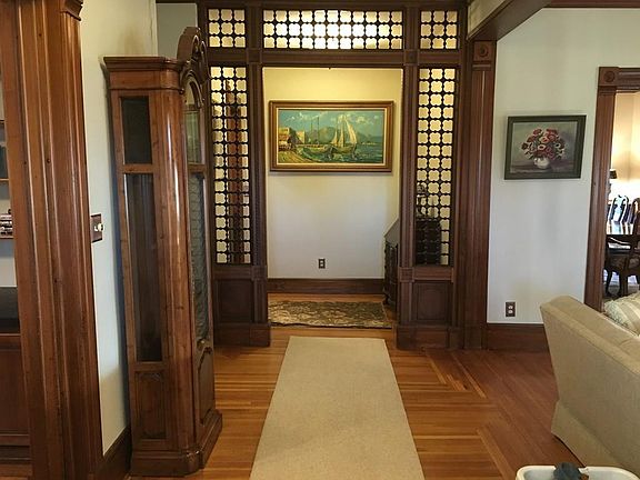 Prestige Victorian sits off the road for plenty of privacy. Features include update kitchen, full bath and family rm. that leads out to a great deck. Lots of beautiful woodwork and hardwood floors through out. Living room with fireplace, built -ins and open to dining rm. with crown molding, across the hall is the office with built -ins and pocket doors. Gorgeous staircase with stained glass window and window seat. Four bedrooms, full bath, master bedroom with fireplace, hall with double closets and access to partially finished attic. More living space with a finished recreation rooms in lower level half bath and another room could be bedroom, etc. Oversized three car garage with opener and plenty of yard to play in. You will be amazed at the beauty and space in this home. Make an appt. today to view it you won't be disappointed.