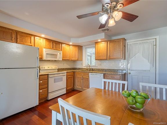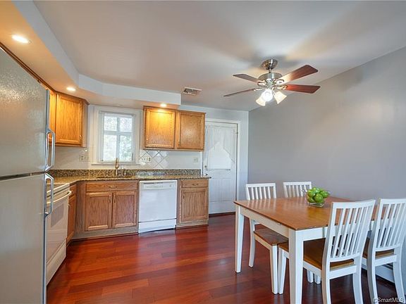 ***HIGHEST AND BEST OFFERS DUE 2/8/21 BY 4PM*** This 3-bdrm, 1.5 bath Tudor chalet style- raised ranch is situated nicely on a low traffic street in the sought after East side of Meriden. This home invites you in with many move-in ready updates. The tastefully remodeled eat in kitchen features granite counters, easy glide cabinets, recessed task lighting and more. Beautiful cherry hardwood flooring carries you throughout the main level and into the light and bright living room with large picture window. There are 2 bedrooms on the main floor both offering ample closet space, ceiling fans, and wall to wall carpeting. A full bathroom completes the main level. Head to the lower level to find the spacious Master Bedroom with its own half bath/laundry room. Each of the two bathrooms have been remodeled, the main level bath with granite counters. This is an energy efficient home with thermopane windows, newer storm doors, insulated garage and garage door. Be prepared for anything with a generator hookup ready for storms, and CENTRAL AIR for hot summer days. You will be sure to love the enclosed CATHEDRAL screened in 14x23 ft porch leading to an inviting deck and lower patio for your peaceful escape- also a perfect setup for summertime BBQ's. The back yard offers plenty of room for children to play and your favorite furry friends! An attached 1 car garage & plenty of parking top it off! This beautiful home in a neighborhood setting won't last long, check it out today!