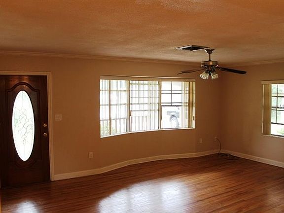 3/2 with large den, formal dining room, living room, hardwood floors in bedrooms, hall, LR, DR, tile in baths and kitchen, screened back porch, fenced back yard, granite counter tops in kitchen, Central Heat and Air, Laundry room, large carport.., 1600 sq. ft. plus porches. There is a separate shop/storage building in the back yard that is available at an optional $150/mo. charge if you need it. This shop building has concrete floor, large front awning, electric roll up door and full electric service