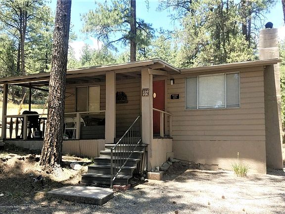 This is the cute cabin in the woods you've been looking for! Great covered porch to relax and enjoy the mountains on. Somewhere in this cabin is an older single wide, however its been remodeled years ago and has all the appearance of a cabin. This one bedroom is large enough for a king bed, and there is a bonus sleeping area that has a bunk bed for the kids. Beautiful fireplace in living room. Nice ample level corner lot with plenty of room to add on if desired. Fruit trees on property, Good solid storage shed in backyard.
