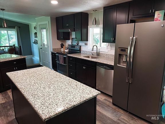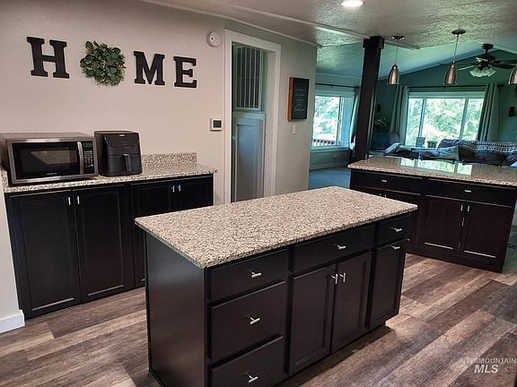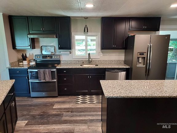 Welcome to this charming countryside property situated on 2.25 right outside of Grangeville. This gem offers a 4 bed/3 bath manufactured home with a full daylight basement. Inside, the kitchen boasts granite countertops & beautiful dark cabinets. Luxury vinyl plank floors provide durability and easy maintenance. Too many other renovations to list! The property is equipped with a heat pump and AC, ensuring year-round comfort. And there is a wood stove for those winter days. Additionally, there is a 2-car detached garage w/electric and its own wood stove. The back and front decks are both covered and perfect for enjoying the outdoors. You can embrace sustainable living and self-sufficiency with your own solar panels w/batteries and water from your private well. For those with a green thumb, you'll appreciate the fruit tree orchard. The property features a fully fenced pasture, ideal for your four-legged friends to graze – Chicken coop and animal shelter included! Schedule your viewing today!