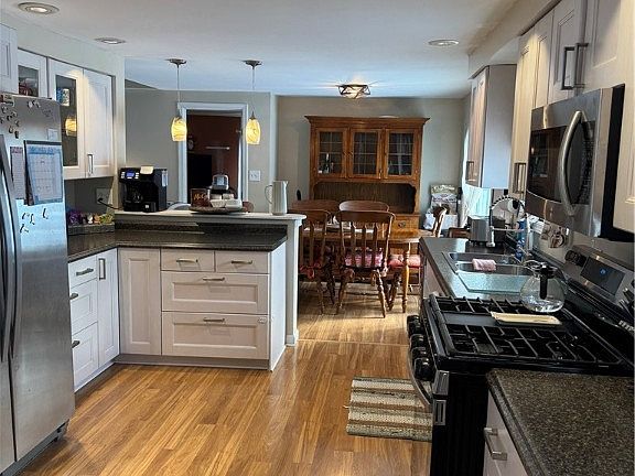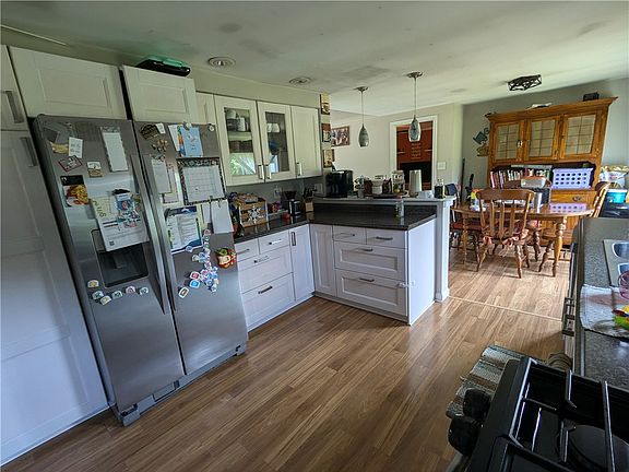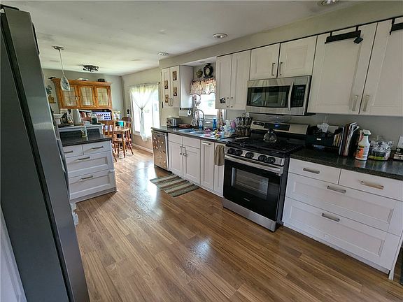Adorable updated 3 Br ranch situated on a gorgeous 1.5 Acre level lot. The private driveway was just recently paved. There is a newer metal roof,soffit & fascia,siding,windows and new hot water tank. The primary bedroom has full bath with newly installed ceramic shower. The updated kitchen with all stainless appliances and flows into the dining room. Enjoy evenings on the covered porch that overlooks the large garden. Huge basement with endless possibilities and includes pellet stove that saves on heating bills in the winter. There is an oversized 2 car garage