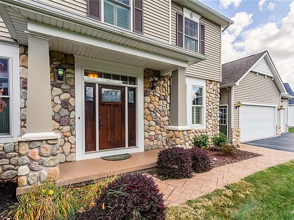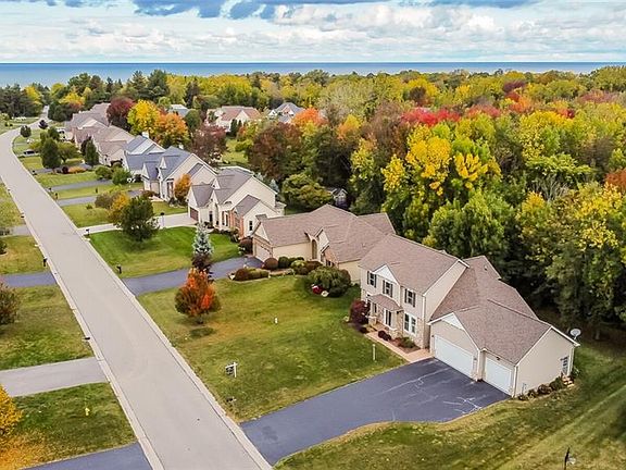 Immaculately maintained custom stone front, open layout Colonial in desirable Lake Breeze Estates! Backing up to 14 acres of town owned greenspace with walking/bike trails and only minutes from the Lake. Custom kitchen with island, built-in appliances & breakfast bar area that opens up to a morning room with plenty of natural light thanks to full wall of windows with seating and storage. Sliders to deck and a stone patio perfect for outdoor dining with a fresh lake breeze. Formal dining room. Great room features gas fireplace with lighted built-in book shelves/storage. 1st floor mud room & laundry off of 3 car heated garage with basement access. Primary bedroom has sitting area with window seating, tray ceiling; Large walk in closet with extra storage & large en-suite bath with tile shower & double vanity. 2 good size bedrooms and a second full bath round off the 2nd floor. Don't miss this opportunity to be Lake Breeze Estates newest resident!