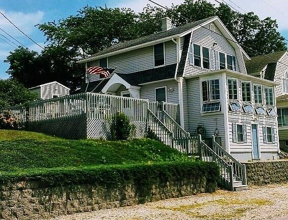 Exceptional views from this beautiful home overlooking Long Island Sound. One of 5 private Giants Neck Association Beaches is just across the Street, super easy access to and from this spacious home. Extend your living onto the extra large deck designed to enjoy all that the day has to offer, sun up to sun down, exceptional uninterrupted views of Long Island Sound. *The living room offers a great area for dining along a row of water-view windows, and there's a great gas fireplace (propane to keep you warm on those chilly nights. *The kitchen has the work area open to the living area for conversation and views. *There's even a den for quiet time on the first floor. *There's a large full bath with laundry and a super mud room/back porch room with storage all on the main level. *Upstairs are three generous bedrooms, the master with a wall over windows overlooking the Sound *The upstairs bathroom is large and has a great linen closet. Outside and downstairs, there's even a large 'boat' room to hold your kayaks, beach chairs, toys and tools as well, and the kayaks and most of the furnishings come with the house. The back yard offers a large shed to store your deck furnishing in the winter months, and there is an outside shower to get the sand from your toes before you go in to the house.