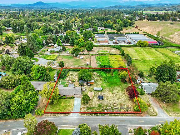 Welcome to this charming 3-bedroom, 2.5-bath home situated just over one level acre spread across 3 tax lots—perfect for a mini farm. Just minutes from town in a peaceful Grants Pass neighborhood, it offers the ideal blend of rural tranquility and urban convenience. Relax next to the fireplace in the cozy living room. The primary bedroom features a private full bath with a dual vanity ensuite. Another bedroom includes a convenient half bath. For the hobbyist, the spacious 2-car garage comes with a workshop area, providing ample space for projects and storage. Enjoy mornings on the covered porch overlooking your expansive property—ideal for gardening, pets, or simply soaking in the serene surroundings. With low property taxes of just $1,201.94, this home offers affordable living without sacrificing space or amenities.
