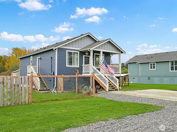 Welcome home to this beautifully maintained single-level gem on a spacious, level 0.38-acre lot at the edge of Sumas! Enjoy stunning Mount Baker views and an open-concept great room with 9-ft ceilings and a bright, inviting feel. The kitchen features quartz counters, stainless appliances, and a gas range—perfect for everyday living or entertaining. Step outside to a large fenced yard with fire pit for play, pets, and gatherings. A 10×12 lofted outbuilding offers great storage or hobby space, plus ample parking and room for a future shop (buyer to verify). Public water & sewer.