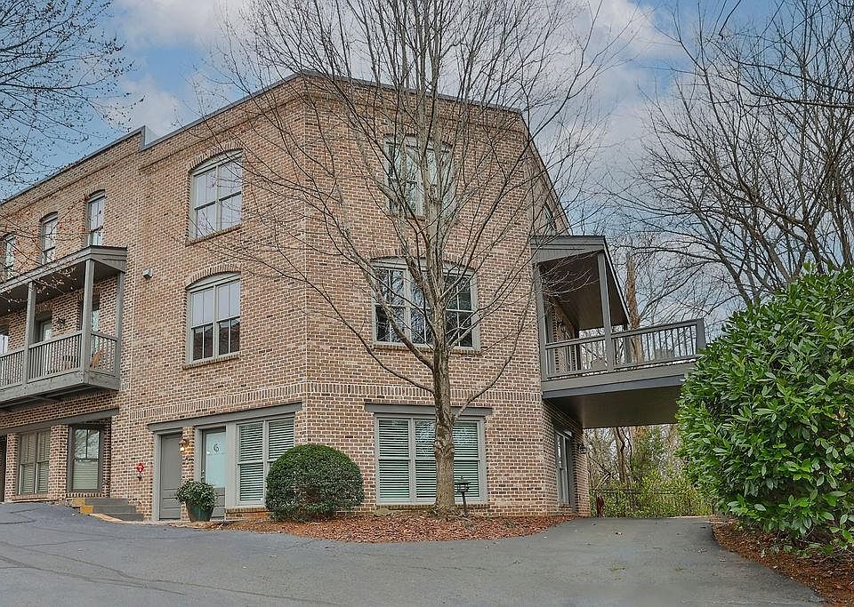 True Live / Work / Play in the prime Canton Street location of Canton Street Walk. Tucked away in the only gated community in Historic Roswell, discover this hidden multi-purpose gem with approximately 974 sq ft of flex office/commercial space and separate entrance on the first level. Up to 5 parking spaces convey which includes a covered carport for tandem parking. All brick construction with an expanded rebuilt deck overlooking a beautiful tree canopy. The main level features an open floorplan with site finished hardwood floors and an expansive great room with floor to ceiling tile surround framing the gas fireplace. Smartly designed floating bench creates a banquette style dining area. Great kitchen with upgraded stainless appliances, vent hood to exterior, granite countertops, and walk-in pantry. Hardwood flooring continues up the staircase and landing on the upper level to the spacious primary suite with light filled spa bath offering dual vanities and two separate walk-in closets. A secondary ensuite completes the upper level. Rare blending of inviting commercial/office space with stellar urban residential space above. Be creative! Lease to your own business and save thousands on rent in the idyllic walkable village of Roswell. Or purpose the entire space for personal/residential use with a bedroom on the lower level. Canton Street Walk is a lush, tree-lined community with a sweet green space for residents. Love where you live and work!