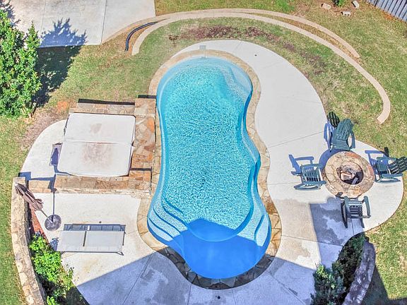Indulge in the ultimate luxury lifestyle with this remarkable home featuring a stunning saltwater pool surrounded by elegant stone work, a relaxing hot tub, and a custom stone fire pit, all nestled in a private fenced backyard that overlooks a peaceful green space with no rear neighbors in sight! Inside, the open floor plan invites you in with a kitchen that boasts granite countertops, a stylish tile backsplash, a breakfast bar, and a cozy breakfast room with a bay window! The kitchen comes equipped with stainless steel appliances including a dishwasher, double oven, built-in microwave and a gas cooktop! The dining room is a sophisticated space with custom built-ins, a coffered ceiling, and charming archways, perfect for hosting memorable dinner parties! A versatile office or playroom on the main level offers flexibility to suit your needs! The living room is a warm and inviting space with a gas fireplace that opens up to a covered back porch featuring coated concrete and surround sound speakers, creating an ideal setting for relaxation and entertainment! A spare bedroom on the first floor, along with a full bath, provides comfortable accommodation for guests or possible inlaw suite! Escape to the luxurious owner's suite, complete with a sitting room, two walk-in closets, a double-head tile shower, a relaxing soaking tub, and a double sink vanity for a spa-like retreat! Three additional spare bedrooms offer ample space for family or guests! Enjoy the convenience of a laundry room, along with full sprinkler systems and 2-inch blinds for added functionality! Conveniently located with easy access to I-20, Fort Gordon, Aiken, or downtown Augusta, this home offers a perfect blend of elegance, comfort, and convenience for the discerning homeowner!