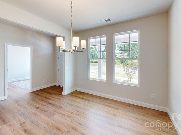 Spectacular Stuart floorplan backs to woods and faces the golf course at Cramer Mountain Golf Club!! This inviting ranch-style home with a finished basement features the primary suite on the main floor, home office/Bedroom 2 w/ closet, a formal dining room, kitchen w/ sitting island opening into the great room & breakfast area. EVP throughout the main level & basement levels. Enjoy the convenience of a spacious laundry room on the main living area w/ access to the 2-car garage. The basement presents 3 additional bedrooms, a full bath and a huge game room providing extra space for all your entertainment and leisure time. This property is more than a home, it is a delightful blend of comfort and functionality. Explore the possibilities and make this residence your own in the vibrant community at the Terraces at Cramerton Mills.