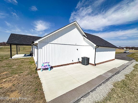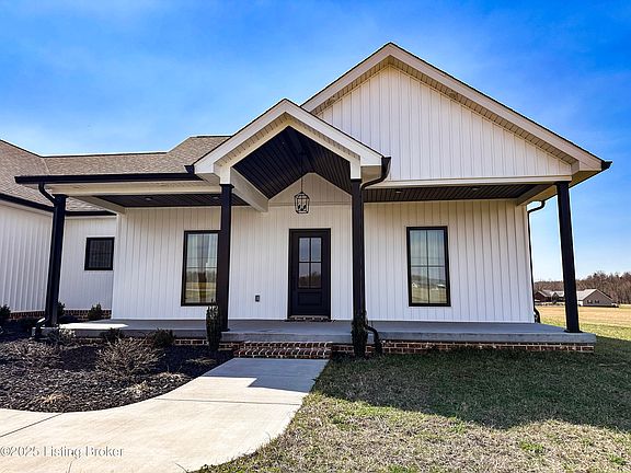 This beautiful home located in the upscale, desirable neighborhood of Hawks Landing in Leitchfield, KY was built in 2024 and is situated on a large 1.8-acre lot. The yard offers ample space for all of your family's needs and the oversized, covered back patio is perfect for entertaining. Inside you'll find a kitchen that's a chef's dream with a large island, custom cabinets, quartz countertops, and a pot filler above the stove. We love the high-end finishes in this space and throughout the rest of the home. In the spacious primary bedroom, you'll find a walk-in closet and en-suite with a gorgeous tiled shower. The secondary bedrooms are also spacious and the large windows provide tons of natural light. The attached two car garage comes equipped with water and a floor drain making it easy to maintain your vehicles all year long. The attention to detail in this one puts it above par and makes it an absolute must see!
