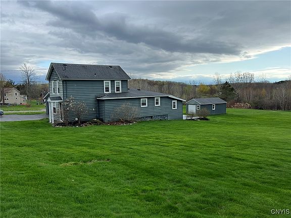 This remodeled 2-bed, 1.5-bath home sits on a 1.3 acre corner lot in the Town of Oswego. Located as the first house south of the Oswego city limits (Byer Rd.), this home is a clean and comfortable remodel, ready for its next owner. The first floor of this house has a large living room in the front with a general/dining room in the middle. There's even a bar/study nook. The bright and welcoming kitchen is located at the back of the house with a nice-sized breakfast room. The new stainless steel kitchen appliances shine. Off the back of the kitchen is a large laundry room with a washer and dryer. Finally, there is a full-bath on the main floor with a tub/shower. On the second floor, there are two bedrooms. One of the bedrooms is so large that it could be turned into a future third bedroom. There is also a half-bath located between the two bedrooms. Outside there are two garages. The one at the front of the lot is a 2-car garage sitting on a wide asphalt driveway. The second 1-car garage sits just behind the house and currently serves more as a storage building. With new windows and a remodeled interior, this home is move-in ready.