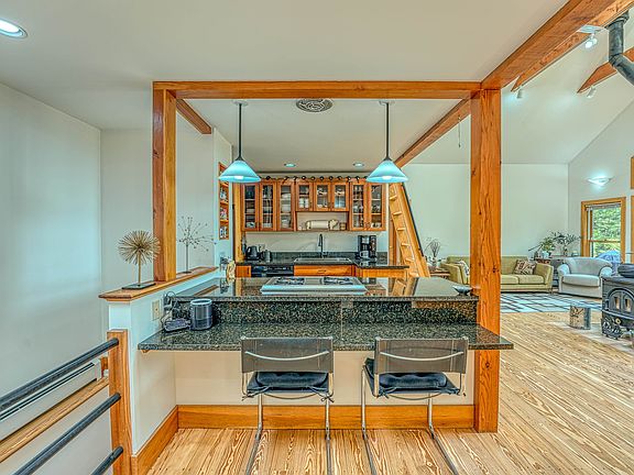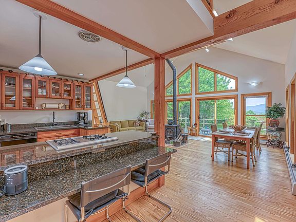 - Cathedral Ceiling(s), Dining Area, Hearth, Kitchen/Dining, Kitchen/Living, Living/Dining, Natural Light, Natural Woodwork, Soaking Tub