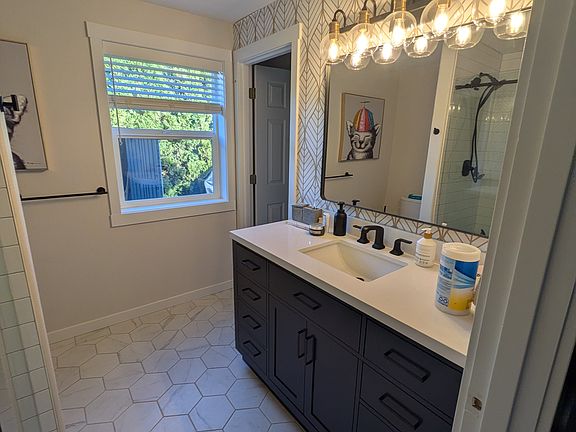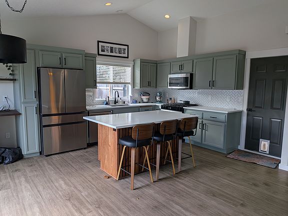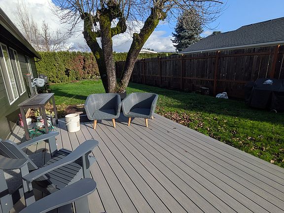 This home has been fully updated in 2025, with fresh exterior paint, composite decking, landscaping with large planter boxes in back for gardening. AC added. RV pad with electrical hook ups. Large, fully fenced back yard. The interior has a full kitchen remodel, granite countertops, new island, all new appliances. Bathrooms were both updated, primary has full tile shower, tile flooring. All new LVP throughout the house (no carpet!) W/D are brand new and included. 1 mile into town, or easy access to Silver Falls State Park. Great Schools. Large city owned greenspace nearby, great for walking dogs or mountain biking! Owner pays: water, sewer Tenant pays: electric, gas, internet, garbage Tenant is responsible for basic landscaping (mowing, weeding, leaf removal) Small outdoor storage shed included. Kitchen bar stools included if desired. All other personal items in photos will be removed. Lease length is negotiable. All pets are negotiable with pet deposit NON Smoking