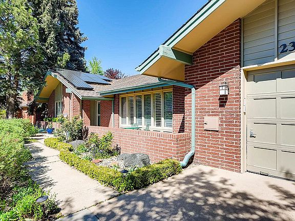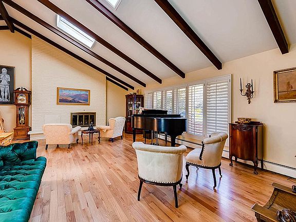 This sprawling Ranch-Style Home in desirable Frasier Meadows in South Boulder is an entertainer's delight with a large enclosed back patio that overlooks a private in-ground pool, perfect for summer fun! The spacious interior boasts generous living & dining rooms, vaulted ceilings with exposed wood beams, skylights, 2 fireplaces, family room/den with built-ins, a main floor study, wood floors & updated kitchen with butcher block island, stainless steel appliances, gas stove & double ovens. The finished basement offers a recreation room, bedroom, bathroom & galley kitchen; great for guests!