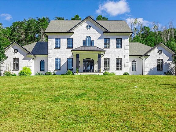 Incredible Value and a Beautiful updated aesthetic, in a Peaceful, Private Setting. 10.91+/- acres, Oversized 5 Car Garage, Beautiful hardwood floors throughout, custom kitchen with gas cooktop and new stainless appliances, Large main level Primary Bedroom with access to it's own private porch, Gorgeous ensuite bath with custom built-in's, double shower heads & rainfall shower-head and New Tile throughout, Modern Freestanding tub, 3 Wonderful Fireplaces in the home (Living room, Dining room and Office.) 3 More bedrooms on upper level with 2 full baths Provides ample space and options. Full basement creates plenty of storage or potential expansion. 2 Ponds and Streams on property. Convenient location to Hwy 52.