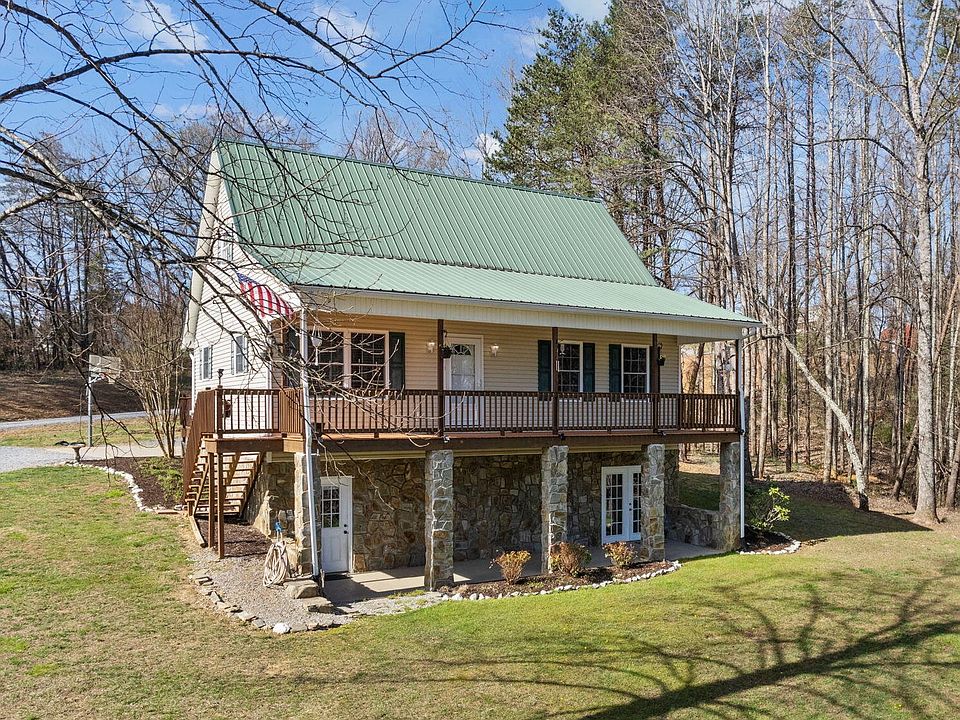 MAIN FLOOR features hardwood flooring, living room, kitchen, two bedrooms, and a full bathroom with tub & shower. Kitchen offer granite countertops, updated cabinets, appliances and opens to the back deck for outdoor grilling and access to parking and garage. SECOND level features two bedrooms and full bath, storage closets. BASEMENT features three rooms with new flooring, bathroom with shower, available utilities for in-law suite conversion, washer and drier hookup, and walkout to patio and front yard with park-like view. BALCONY off main level and patio from walkout basement on lower level offers a grand view of the sloping yard and mountain view. Large concrete parking pad with in ground basketball goal tops the fresh gravel driveway on this private lot in a park-like setting. Carbon monoxide and smoke detectors. Hot Tub and pool table conveys w purchase. Septic permit for four bedroom house. Floor square-footage dimensions taken from courthouse property assessors office. Yard is 1.67± acre lot excluding the 319' driveway.