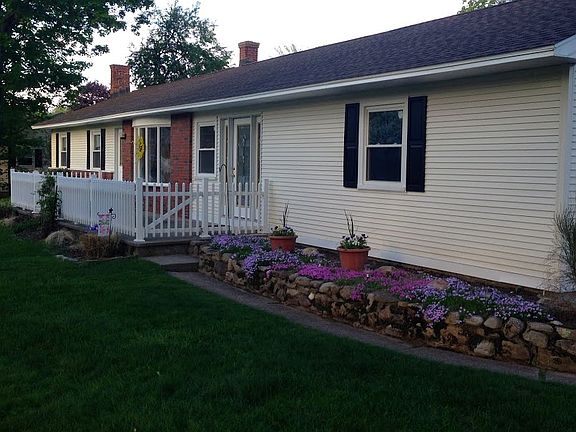 Spacious ranch conveniently located near the new Harris Brook Elementary School. This sunny home has an open floor plan with a new kitchen that has quartz countertop and breakfast bar & slider to newer 12 x 30 deck. The family room or dining room connects nicely for plenty of entertaining space. Large living room with bay window is large enough for a sectional sofa with plenty of sunlight.The master bedroom includes a convenient en suite full bathroom that has been recently updated. The guest bath was remodeled with neutral décor to suit your taste. Convenient tiled mudroom to drop your belongings and keep you organized. A two car spacious attached garage . A walkout basement adds living space with a rec area. Replacement windows, new gas furnace and A/C ,roof is under 10 yrs old. As you walk around the property you will find gorgeous landscaping including many colorful perennials and a charming front porch This property is close to 291 and the MA pike making travel a snap!