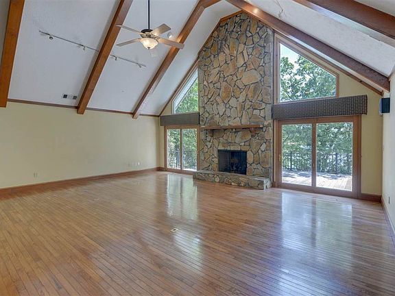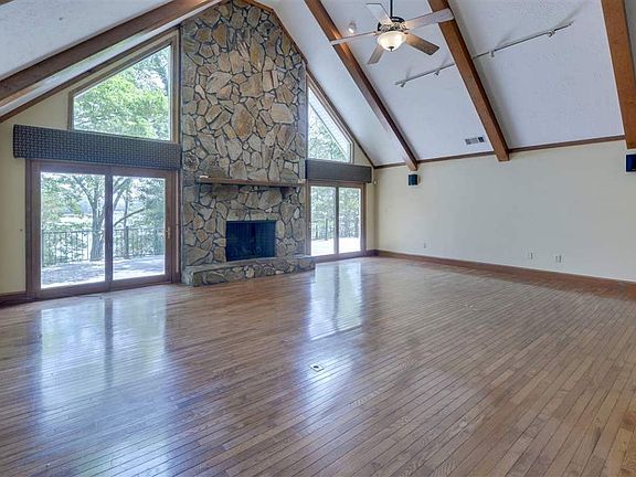 Beautiful lake home with tons of privacy. This home is enclosed with a private security gate and professionally designed landscaping, provides plenty of space and privacy for your family and several guests. Master on main level with walk in closet and bathroom with a double vanity. 2 additional bedrooms on main with a Jack-and-Jill bathroom separate toilet and sink with a shared shower and linen closet. Formal dining room, large great room, and upstairs loft. Downstairs den with a man cave, large library/office with built in bookcases, full kitchen and a 4 seasoned porch attached to a screen porch that leads to and open patio with outdoor access to backyard.